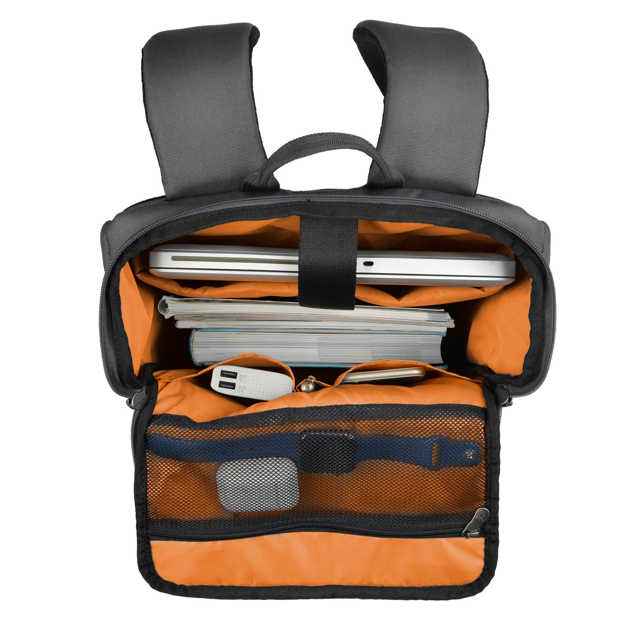 FEATURES - Business backpack with dedicated compartment to protect 15.6" laptop - Spacious U-shaped main compartment opening design increases luggage accessibility - Organized storage in the front compartment keeps essentials neatly organized - Expandable side