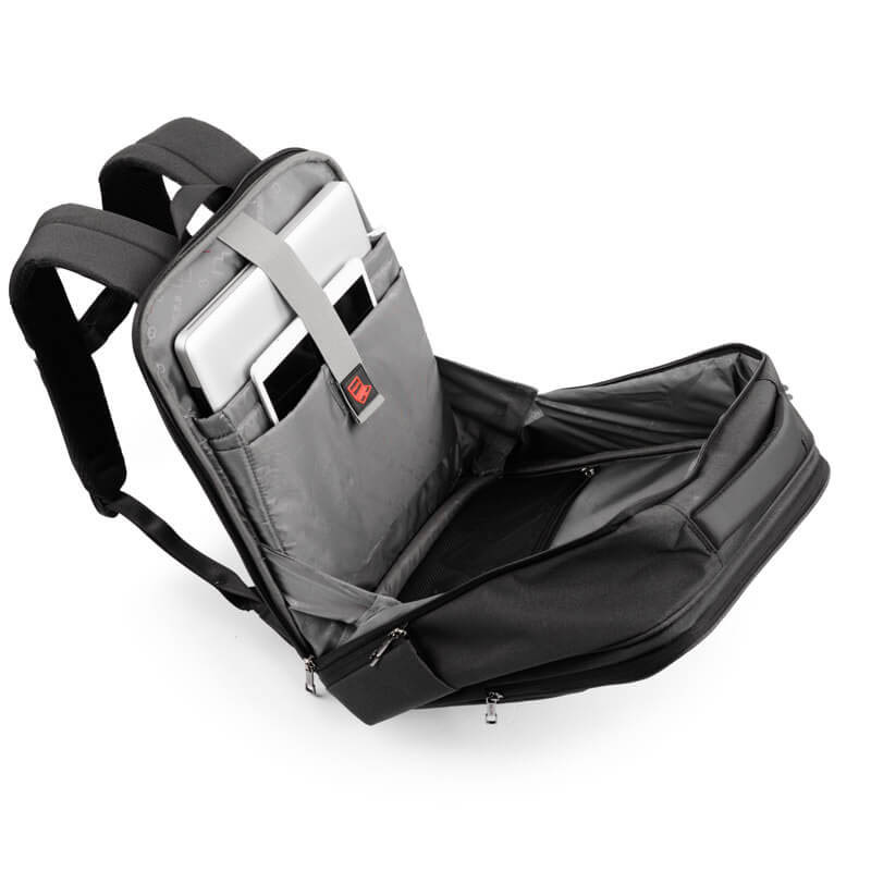 FEATURES - Business backpack with dedicated compartment to protect 15.6" laptop - Spacious U-shaped main compartment opening design increases luggage accessibility - Organized storage in the front compartment keeps essentials neatly organized - Expandable side