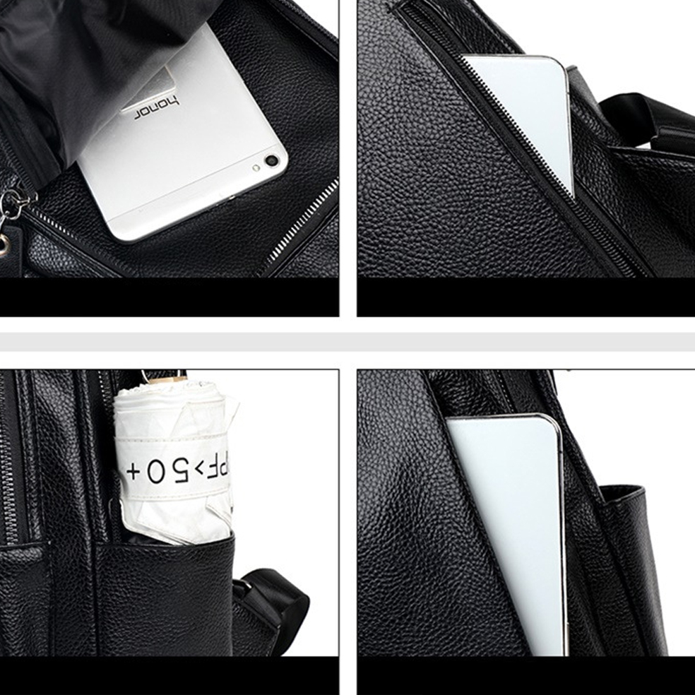 Kích thước : rộng 28cm X cao 41cm X dày 12cm Trọng lượng: 1.1kg Màu sắc: Đen Phương pháp sản xuất: công nghệ cao Chất liệu : Da Bò thật, phụ kiện kim loại không