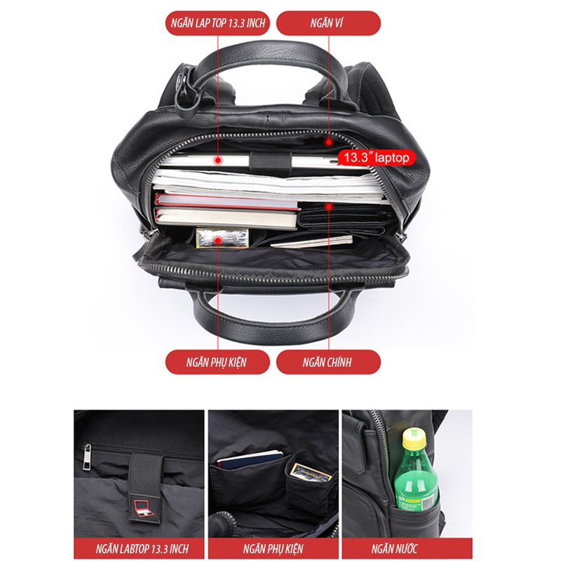 Ba lô nam da bò thật BHM9251 Vừa laptop 13.3inch