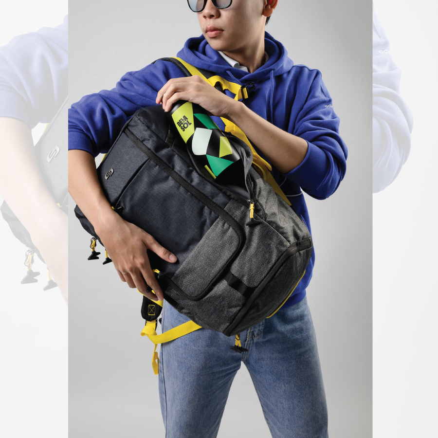 Với thiết kế đa năng, balo có thể mang theo 5 kiểu khác nhau, từ kiểu đeo sau lưng truyền thống cho đến cầm xuôi hay mang ngược đều được.