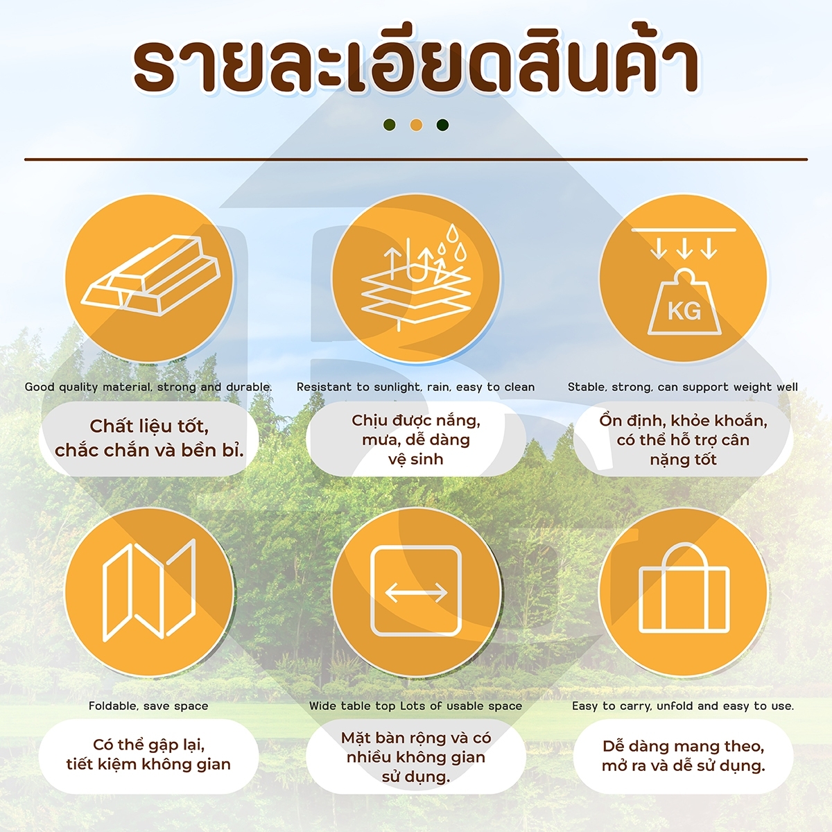 Mô tả sản phẩm - Mặt bàn cắm trại: Đây là phụ kiện chính của sản phẩm, được thiết kế để sử dụng trong các hoạt động cắm trại. ️ Chi tiết sản phẩm