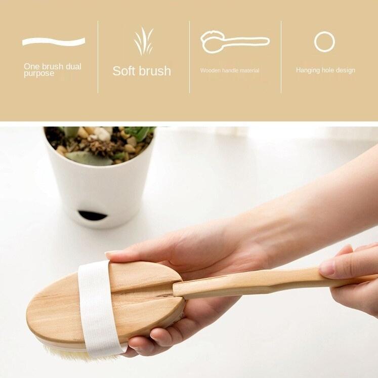 ✨Bàn chải chà lưng cán gỗ dài tiện dụng, cây cọ lưng chà lưng tắm với sữa tắm cực sạch (Hàng Chính Hãng) B0123