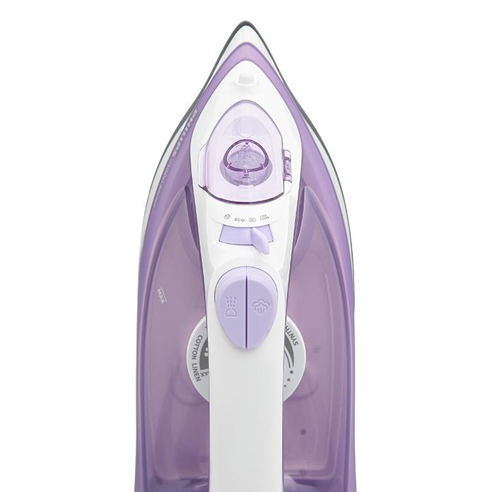 Màu sắc thời trang có màu tím thanh lịch, mặt đế bàn ủi phủ Titanium chống dính dày bền. Bàn ủi lướt êm ái trên mọi chất liệu vải, dễ làm sạch. Rãnh cúc và