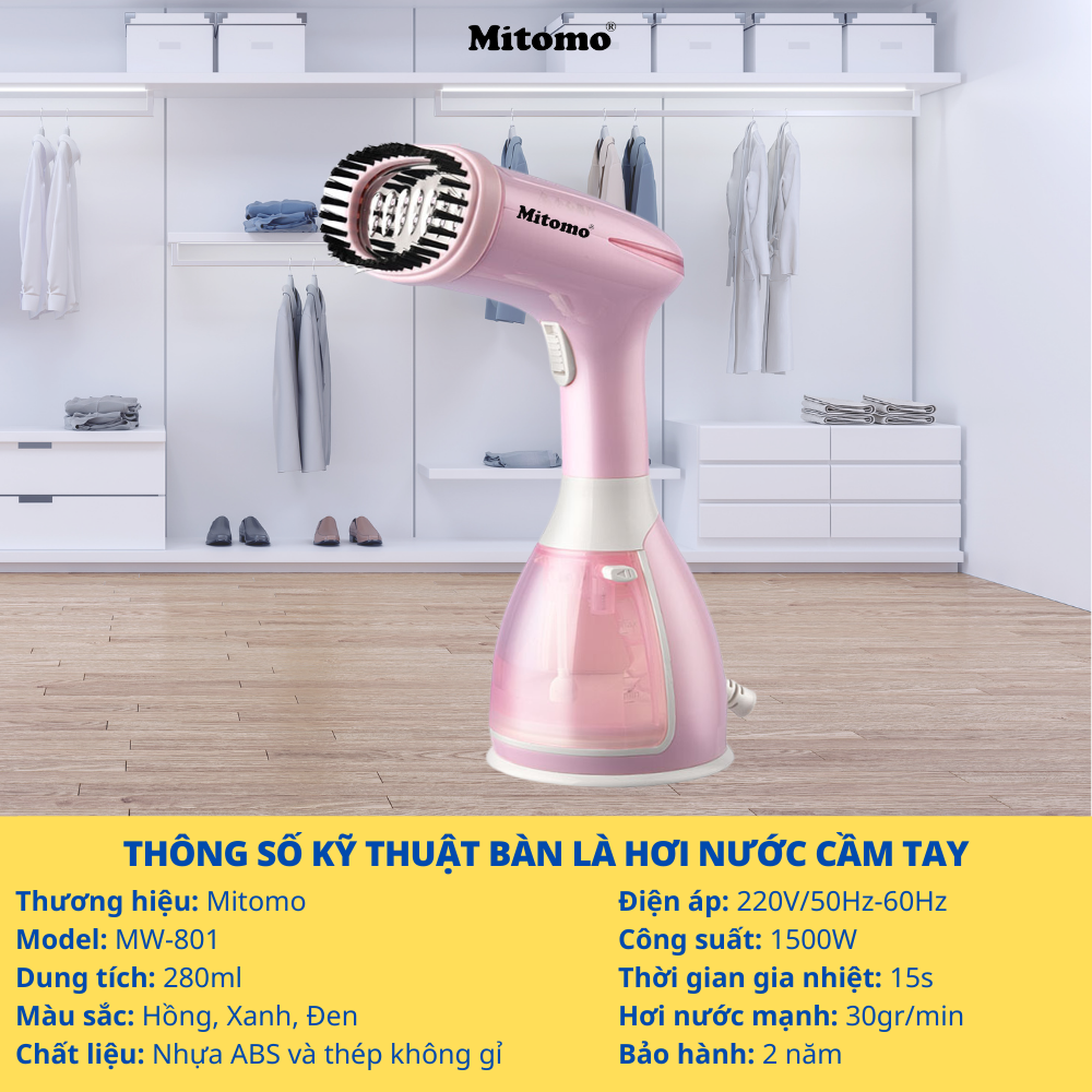 ✨Bàn là hơi nước cầm tay Mitomo MW - 801 tích hợp 3 chế độ là hàng cao cấp công suất 1500W - bảo hành 2 năm hàng chính hãng