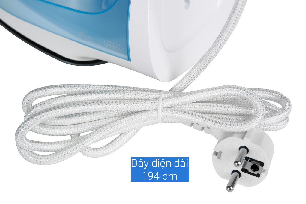 - Hoạt động với công suất 2000 W cho khả năng làm nóng mặt đế nhanh, ủi thẳng đồ mau, tiết kiệm điện năng gia đình
