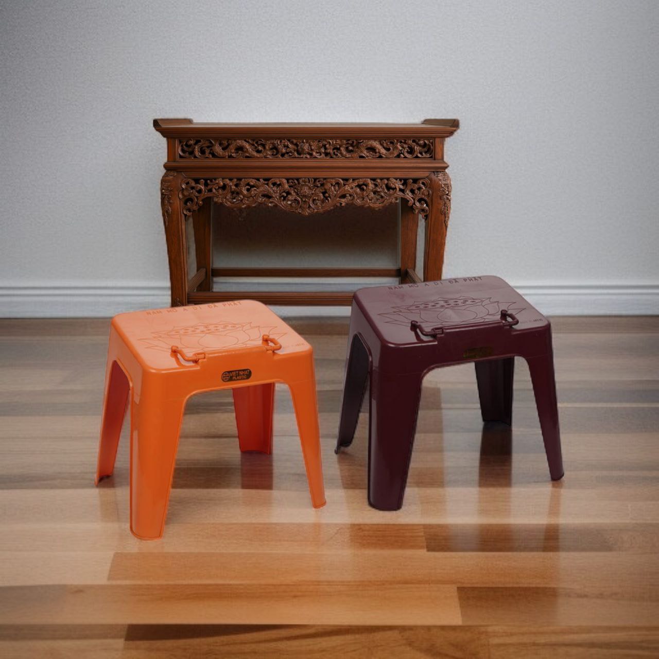 BÀN NIỆM PHẬT VIỆT NHẬT – Mã 1811 Kích thước: D30.5 x R22 x C32 (cm) Màu sắc: Nâu – Vàng trang nghiêm Chất liệu: Nhựa PP nguyên sinh cao cấp THÔNG TIN SẢN PHẨM Bàn niệm Phật Việt Nhật là lựa chọn l...