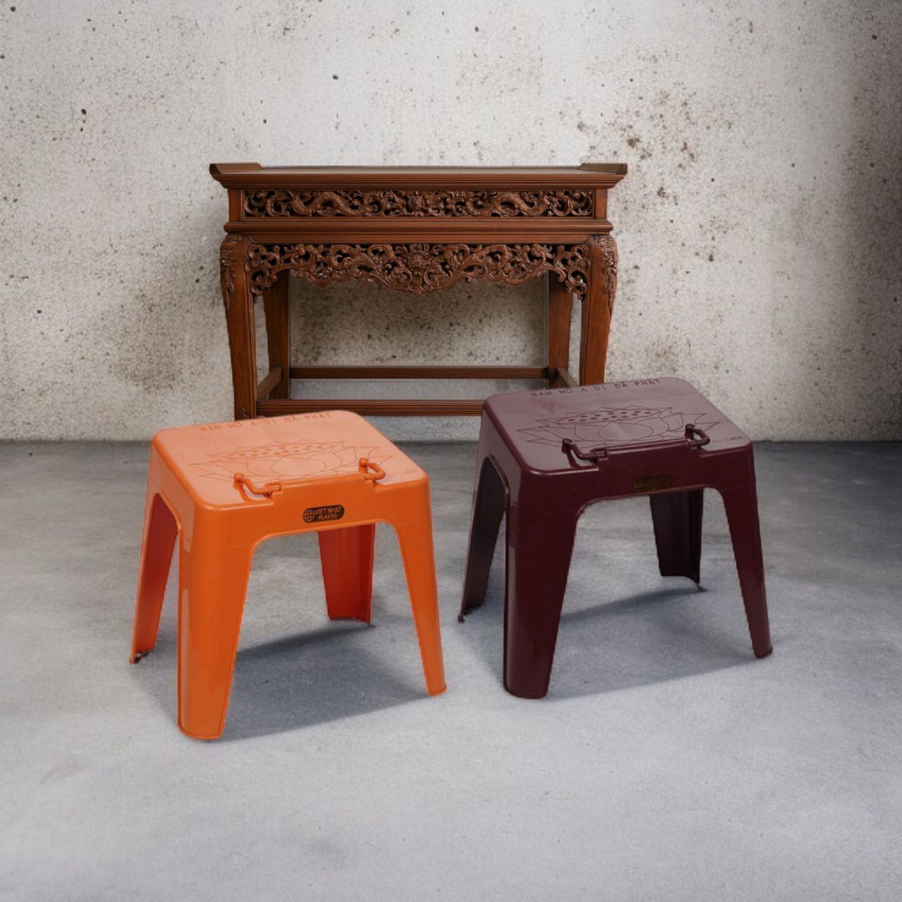 BÀN NIỆM PHẬT VIỆT NHẬT – Mã 1811 Kích thước: D30.5 x R22 x C32 (cm) Màu sắc: Nâu – Vàng trang nghiêm Chất liệu: Nhựa PP nguyên sinh cao cấp THÔNG TIN SẢN PHẨM Bàn niệm Phật Việt Nhật là lựa chọn lý tưởng cho các Phật tử đang tìm kiếm một chiếc bàn tụng kinh gọn nhẹ – bền đẹp – trang nghiêm. Điểm nhấn nổi bật là tòa sen trang trí tinh tế cùng dòng chữ “Nam Mô A Di Đà Phật” in nổi đầy tôn kính, tạo nên không gian tu tập linh thiêng và thanh tịnh. Thiết kế bàn có độ nghiêng phù hợp, gờ chèn sách chắc chắn, giúp quá trình tụng kinh thoải mái và ổn định. ƯU ĐIỂM NỔI BẬT Nhựa PP cao cấp – an toàn & bền bỉ Thiết kế nghiêng khoa học, có gờ giữ sách Trang trí hoa sen – biểu tượng của sự giác ngộ In nổi chữ “Nam Mô A Di Đà Phật” trang nghiêm Chân bàn vững chắc – chịu lực tốt Có thể xếp chồng – tiết kiệm không gian Tông màu nâu – vàng thanh tịnh, phù hợp không gian thờ Thay thế lý tưởng cho kệ gỗ nặng nề HƯỚNG DẪN SỬ DỤNG ➤ Dùng để đặt sách kinh, tài liệu tụng niệm tại nhà, chùa, đạo tràng... BẢO QUẢN Tránh ánh nắng trực tiếp và nhiệt độ cao Lau sạch nhẹ nhàng bằng khăn ẩm Biểu tượng trang trí Tòa sen – tượng trưng cho sự thanh tịnh, thuần khiết ️ Phật hiệu – gợi tâm an lành, nhắc nhở niệm Phật mỗi ngày TỪ KHÓA TÌM KIẾM