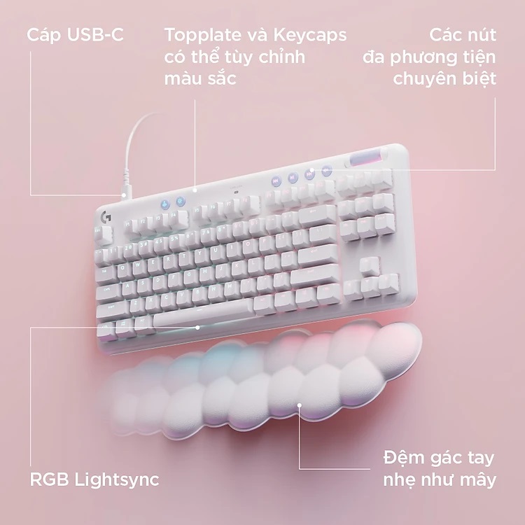 MÔ TẢ SẢN PHẨM Bàn phím cơ gaming không dây Logitech G715 TKL từ Bộ sưu tập Aurora đem lại những rung động phím thấp với hiệu suất phím cao, do đó bạn có thể