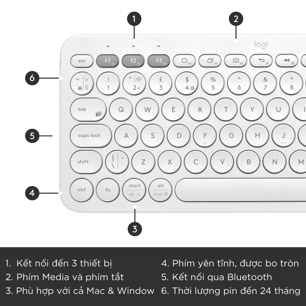 - Thiết kế siêu mỏng, trọng lượng nhẹ, dễ dàng mang theo và bố trí trên bàn làm việc - Kết nối không dây Bluetooth hỗ trợ đa thiết bị, cho phép kết nối cùng lúc tối đa 3 thiết bị - Tương thích linh hoạt với Windows, macOS, iPadOS, iOS, Android và ChromeOS - Phím tròn đặc trưng của Logitech, mang lại cảm giác gõ êm ái và phản hồi tốt - Tích hợp phím tắt thông minh, dễ dàng chuyển đổi nhanh giữa các thiết bị chỉ bằng một nút bấm - Sử dụng 2 viên pin AAA, cho thời lượng sử dụng lên đến 36 tháng - Phạm vi kết nối ổn định trong bán kính 10m, hoạt động mượt mà và tin cậy - Thiết kế tối giản, phối màu hiện đại, phù hợp không gian làm việc sáng tạo - Cấu trúc bàn phím chắc chắn, hạn chế tiếng ồn khi gõ - Thương hiệu Logitech uy tín, chất lượng cao, bảo hành chính hãng LƯU Ý KHI MUA HÀNG Cảm ơn quý khách đã quan tâm đến sản