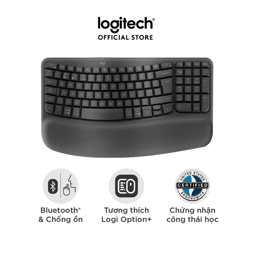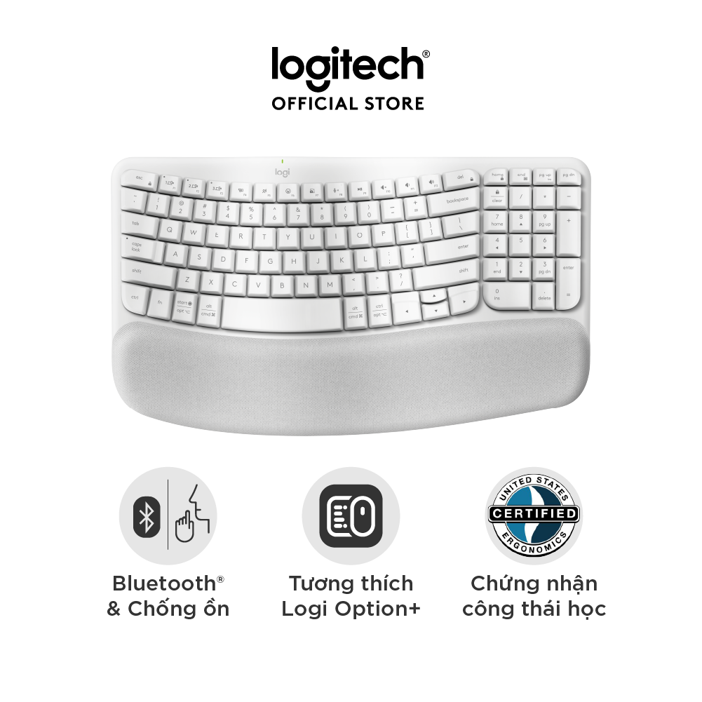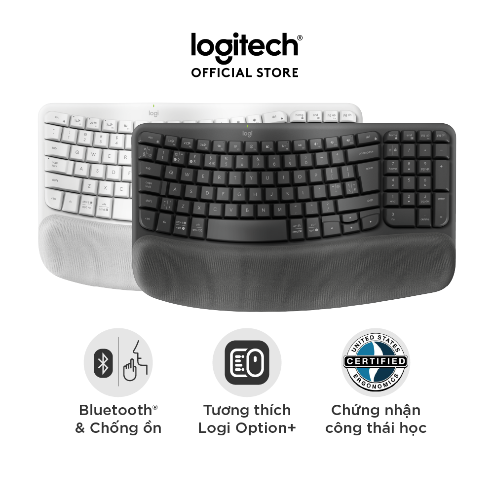 Thuận tiện hơn với bàn phím Logitech Wave Keys không dây bluetooth Công thái học được tạo hình để giúp ngày làm việc của bạn dễ dàng hơn