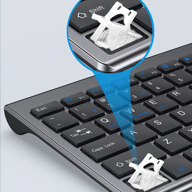 THÔNG SỐ KỸ THUẬT - Thiết kế: Khung nhôm, chi tiết cắt cát CNC tỉ mỉ - Kết nối: Bluetooth 5.1 và 2.4Ghz, 4 thiết bị - Kết nối đa thiết bị, tự động nhận diện hệ điều hành - Nút bấm silent, giảm 80% tiếng ồn - Hỗ trợ: MacOS, Windows, Android - Sạc nhanh Type C: 30 phút sạc dùng 150 ngày THIẾT KẾ HOÀN THIỆN Thiết kế khung nhôm chắc chắn, độ hoàn thiện cao với chi tiết cắt vát CNC tỉ mỉ, chính xác, mang lại vẻ ngoài thời thượng, cao cấp. THIẾT KẾ MỎNG NHẸ, NHỎ GỌN Trọng lượng chỉ 295g, kích thước 0.60 -1.2 x 28 x 12 cm giúp tiết kiệm diện tích không gian làm việc, dễ dàng bỏ túi mang theo, phù hợp các công việc cần di chuyển thường xuyên linh động. KẾT NỐI ĐA CHẾ ĐỘ VÀ CHUYỂN ĐỔI NHANH GIỮA CÁC THIẾT BỊ Kết nối 2 chế độ (Bluetooth 5.1 và 2.4 Ghz), 4 thiết bị, chuyển đổi dễ dàng bằng các phím tắt hoặc cần gạt, hỗ trợ người dùng làm việc đa kết nối. TƯƠNG THÍCH VÀ TỰ ĐỘNG NHẬN DIỆN CÁC HỆ ĐIỀU HÀNH Hỗ trợ đa hệ điều hành như MacOS, Windows, Android – tích hợp tất cả trong một chiếc bàn phím. KẾT CẤU PHÍM X-SCISSORS CẢI TIẾN Kết cấu cắt kéo cải tiến tạo ra trải nghiệm gõ êm ái, giảm tới 80% tiếng ồn, phù hợp nhu cầu cần làm việc yên tĩnh. THIẾT KẾ KEYCAP VỪA VẶN CÁC NGÓN TAY Thiết kế keycap tạo ra trải nghiệm gõ phím chính xác, thoải mái. Nhờ đó hỗ trợ người dùng cải thiện tốc độ đánh máy. BỔ SUNG SẠC NHANH USB-C Dung lượng pin 350 mAh kèm cáp sạc USB-C trực tiếp sạc khi sử dụng, tránh gián đoạn thời gian làm việc.