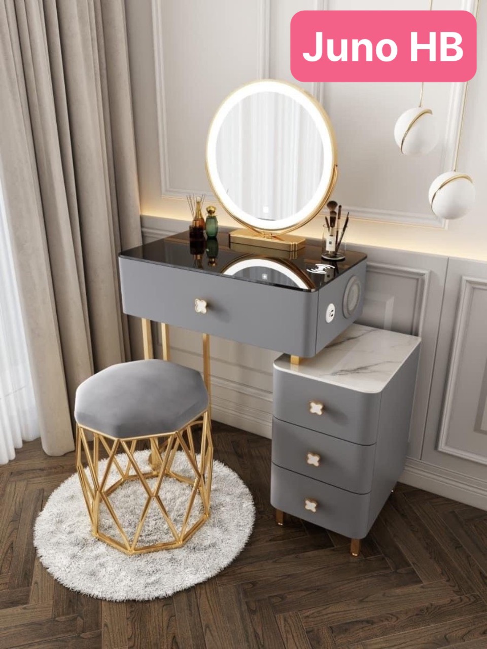 Bàn trang điểm sang trọng hiện đại - Kích thước: Dài 1m x rộng 40cm x cao 75cm - Thanh lịch, thu hút, thời thượng là những tính từ miêu tả chính xác nhất về