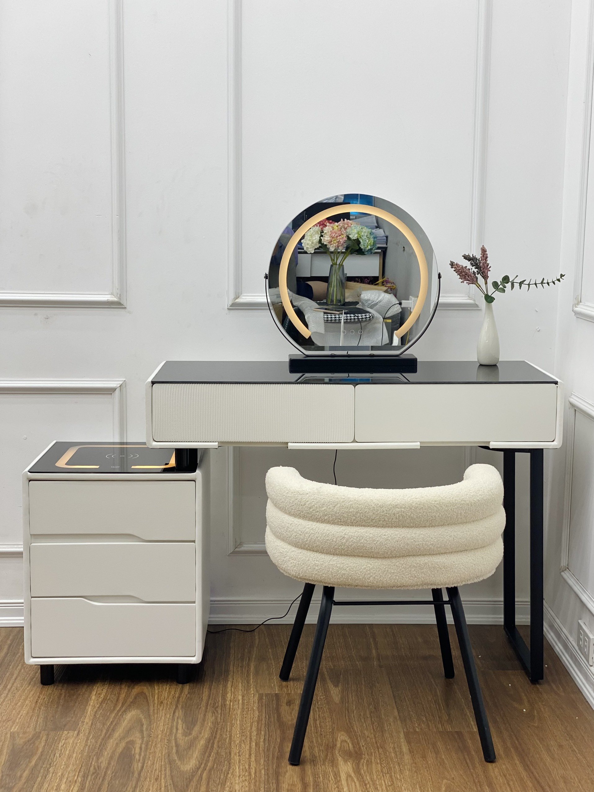 ✨Bàn trang điểm HS Tundo bọc da mặt kính gương led cảm ứng