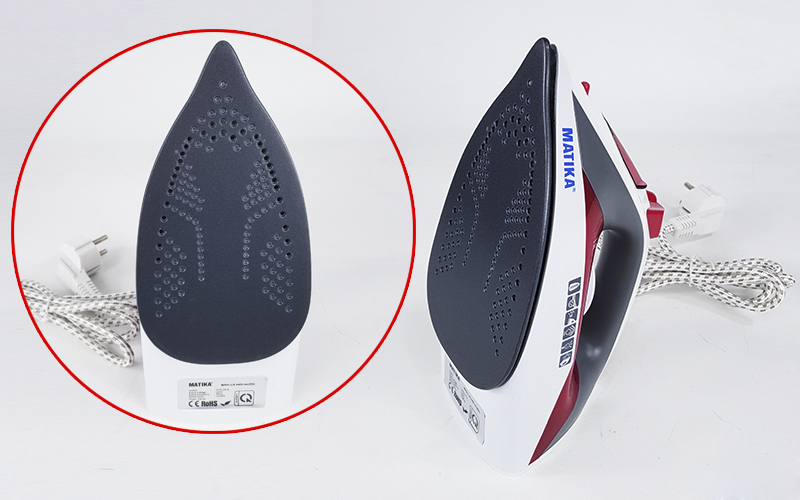 - Mặt đế của MTK-2916 làm bằng hợp kim nhôm phủ men chống dính Teflon cao cấp nên đều có thể ủi phẳng mọi loại vải dễ dàng mà vẫn vẹn toàn được màu sắc.