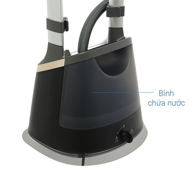 - Dung tích bình nước lên đến 2 lít ủi được khoảng 6 - 7 bộ quần áo cho một lần châm nước, thiết bị thích hợp để sử dụng với nước máy. Tuy nhiên, nếu bạn sống ở khu vực có nước cứng, bạn nên hòa với 1 ít nước máy và nước cất hoặc nước đã khử khoáng. Việc này sẽ ngăn đóng cặn nhanh và giúp kéo dài tuổi thọ của thiết bị. Cảnh báo không thêm nước hoa, nước từ máy sấy, giấm, hồ vải, chất làm sạch cặn, chất phụ trợ ủi, nước đã được tẩy sạch bằng hóa chất hoặc các hóa chất khác, do các chất này có thể gây tình trạng phun nước, ố vàng hoặc làm hỏng thiết bị của bạn. Bảng điều khiển