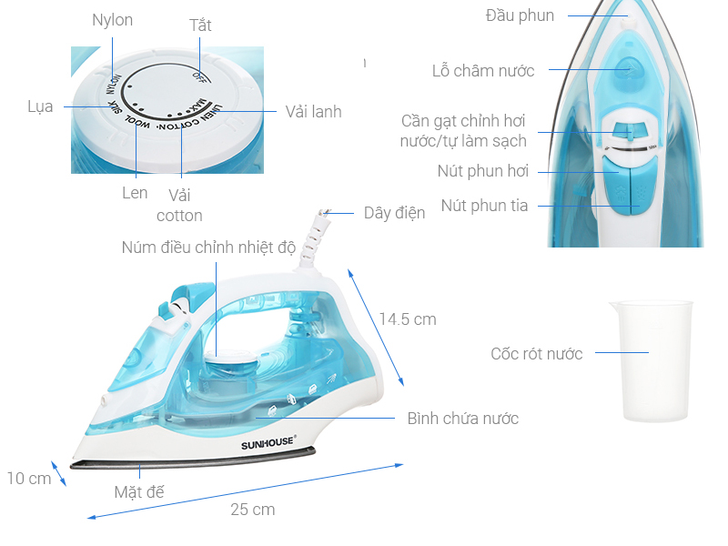 Công suất ủi 1600W điều chỉnh nhiệt bằng núm xoay đơn giản