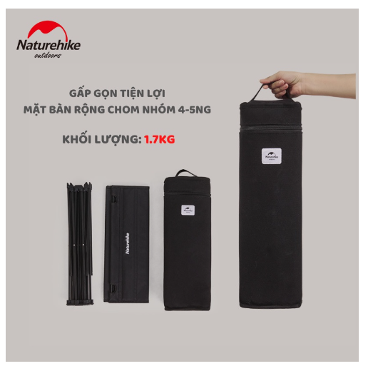 MÔ TẢ SẢN PHẨM - Thương hiệu: NatureHike - Mã sản phầm: NH20JJ020 - Chất liệu: + Mặt bản: Vải Oxford 1680D + Khung bàn: Hợp kim nhôm - Kích thước & Trọng lượng: +