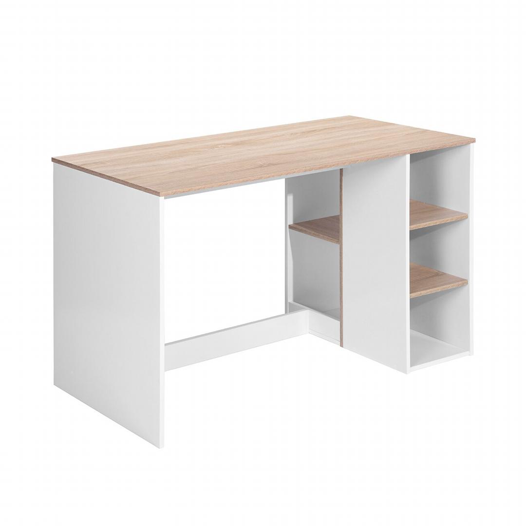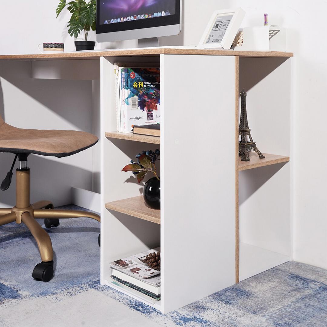 - Tên sản phẩm: Bàn làm việc kèm ngăn kéo và kệ để đồ - Chất liệu: Gỗ MDF phủ melamine cao cấp chống xước - chân bàn gỗ tự nhiên - Màu sắc: Vân gỗ sồi - Kích thước: 80/120 x 55 x 82cm (dài x rộng x cao) - Công năng: Là mẫu bàn làm việc, bàn học giúp tiết kiệm diện tích không gian phòng