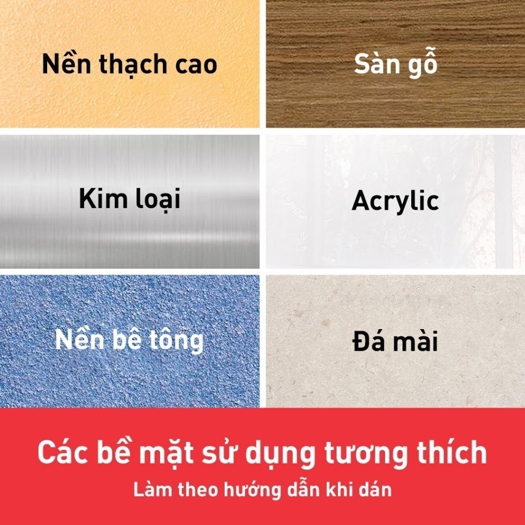 - Bề mặt: Vách thạch cao, Sàn gỗ, Kim loại, Acrylic, Đá mài, Nền bê tông, Bề mặt nội thất ô tô (dùng 1m cho 4.6kg)