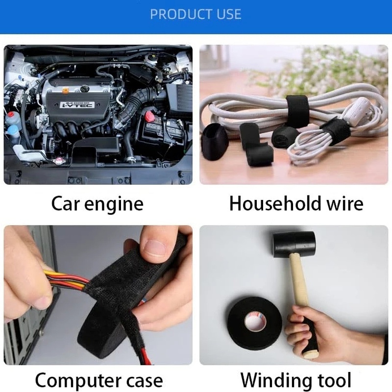 Thay thế hoàn toàn băng dính điện với độ bền thấp và hay chảy nhựa Sử dụng thay thế trên xe hơi, tự dính và mạnh mẽ, chịu nhiệt độ, chống mài mòn, hiệu suất nhiệt độ cao. Dẻo dai và ổn định, có thể được sử dụng trong khoang động cơ và khai thác khoang hành khách. Cũng hiệu quả cách âm nhất định. Do chất liệu mềm mại và khả năng chống ăn mòn, lý tưởng cho các bộ phận nội thất ô tô sử dụng giảm tiếng ồn.