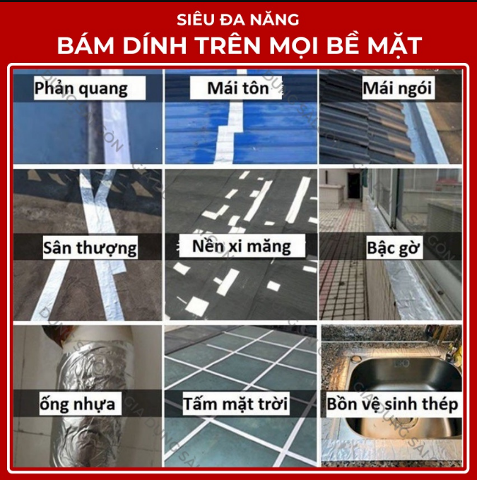 Băng keo chống thấm chuyên dụng có tính ứng dụng cao, rất thông dụng ở thị trường nước ngoài do tính hiệu quả, tiết kiệm. Có thể gắn trên tất cả các bề mặt như