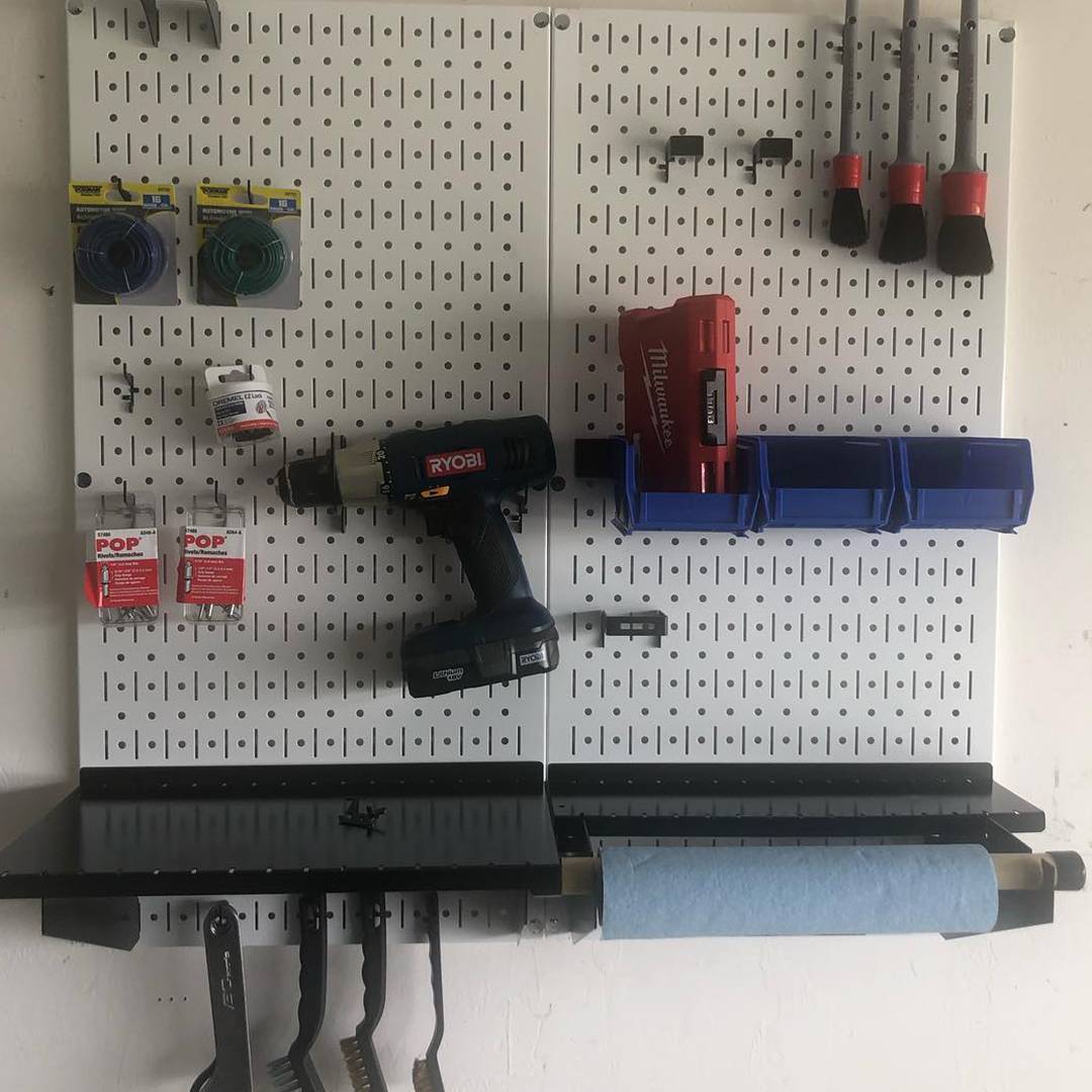 - Bảng treo dụng cụ Pegboard tổ chức lưu trữ thông minh và trực quan các dụng cụ cầm tay (tools) như: búa, máy khoan, máy cắt,…