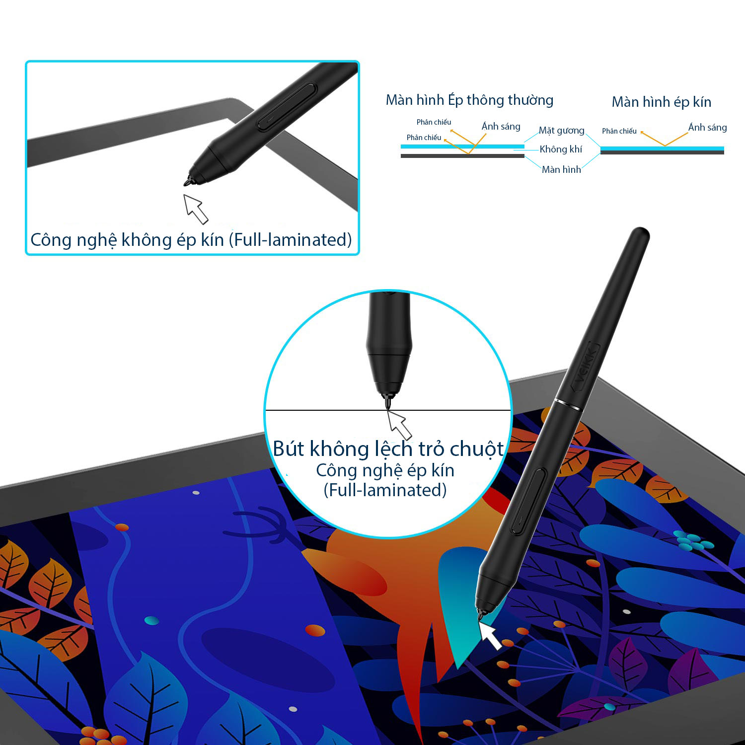 Màn hình & bút độ nhạy cao, cung cấp khả năng điều khiển chính xác, giảm thiểu hiện tượng lệch trỏ chuột.