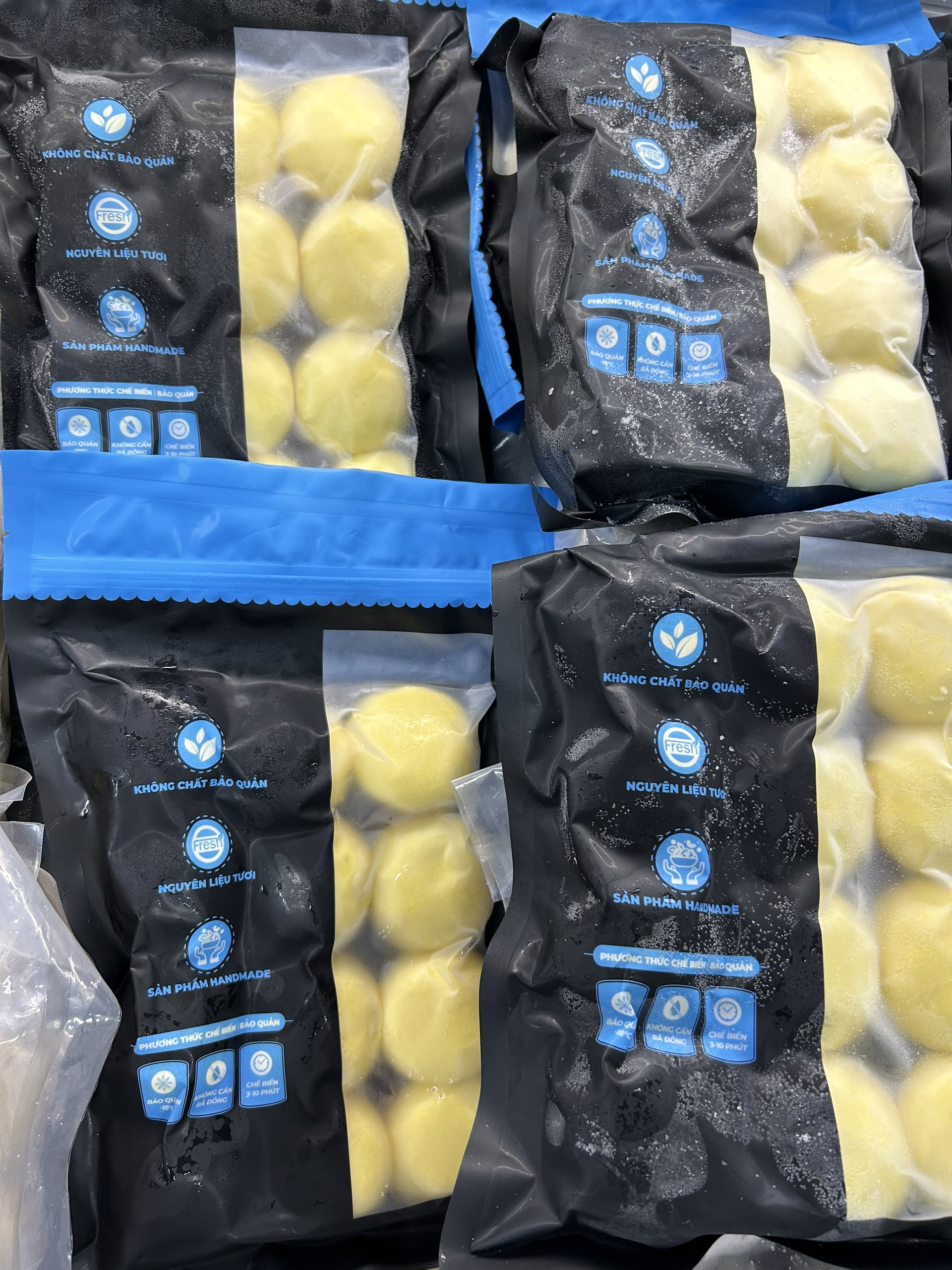 Mua tại TiktokVới sản phẩm tươi sống, trọng lượng thực tế có thể chênh lệch khoảng 10%. ĐỊNH LƯỢNG: 45g/cái x 12 cái/gói THÀNH PHẦN: - Vỏ bánh bao - Nhân: bơ, bột custard, trứng gà, gia vị, nước MÔ TẢ SẢN PHẨM: Bánh bao có vỏ màu vàng, giấy lót màu đỏ, nhân màu vàng. Vỏ bánh mềm xốp, nhân tan chảy thơm mùi trứng sữa, vị béo đặc trưng của trứng muối gây cảm giác khó cưỡng cho người dùng CÁCH CHẾ BIẾN: - Không rã đông - Hấp 100°C, 6-7 phút - Microwave ở chế độ hấp: 3-4 phút BẢO QUẢN: - Bảo quản: ở nhiệt độ -15°c đến -18°c hoặc trong ngăn đá tủ lạnh - Không đông lại sau khi đã rã đông HSD: 12 tháng