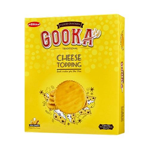 Bánh gooka cracker cheese topping HG 180 gam Bibica Bánh Cracker phủ phô mai đặc biệt thơm ngon với lớp vỏ bánh giòn rụm kết hợp vị phô mai béo ngậy mặn ngọt hài hòa.