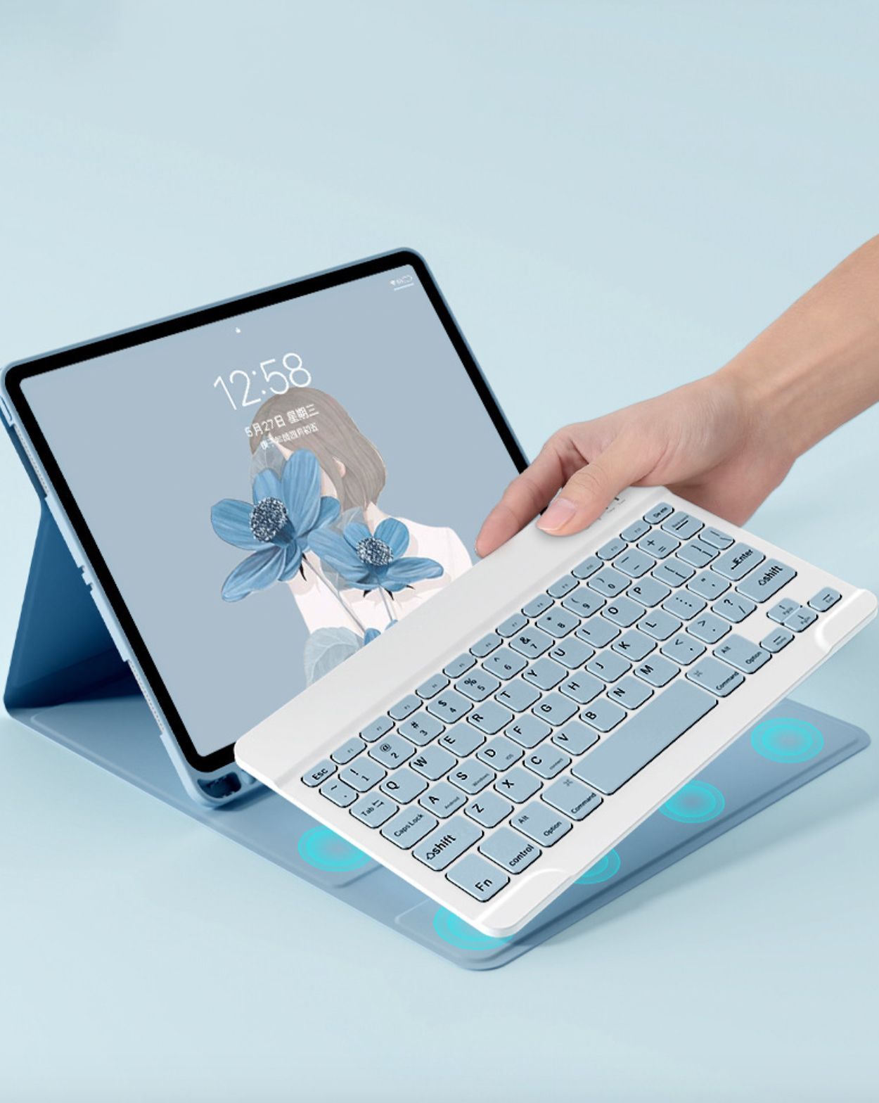 Mua tại TiktokChỉ mất 1 phút để hô biến chiếc ipad của bạn thành 1 chiếc laptop nhằm nâng cao hiệu quả công việc ️ Bao da chất liệu silicone TPU cao cấp với khả năng chống nước, chống bám bụi, chống sốc vượt trội ️ Bàn phím không dây bluetooth đa năng: Phạm vi kết nối không dây lên đến 10 mét, kết nối với máy tính bảng bằng bluetooth, có thể hỗ trợ 3 hệ thống (IOS / ANDORID / WINDOWS), không chỉ tương thích với ipad mà còn tương thích với máy tính xách tay & máy tính bảng & điện thoại thông minh của nhiều thương hiệu. 1.Bluetooth 5.1 tiêu chuẩn 2. Phạm vi kết nối: 10 mét 3. Thời gian chờ: 100 ngày 4. Thời gian hoạt động: Liên tục 90 giờ 5. Thời gian sạc: 3 giờ 6. Loại pin : Pin lithium tích hợp 7. Dung lượng pin: 480 mAh ️ Tích hợp ngăn đựng bút:Dễ dàng cất giữ bút apple của bạn và tránh trầy xước(KHÔNG BAO GỒM BÚT) ️ Bao da bàn phím có thể tháo rời :Bàn phím gắn vào bao da bằng nam châm để bạn có thể dễ dàng tháo hoặc điều chỉnh vị trí đặt bàn phím ️ Bao da với tính năng smart cover:Hỗ trợ chức năng tự động tắt / bật khi đóng và mở nắp bao da giúp tiết kiệm năng lượng cho ipad. SẢN PHẨM BAO GỒM: 1 bao da + 1 bàn phím bluethood + 1 cáp usb