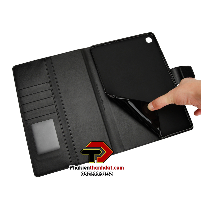 Bao da dạng ví SamSung Galaxy Tab A7 2020 T505, Tab A7 Lite hiệu Hanman có quai cài. Bao da được làm từ chất liệu da cao cấp, bền chắc, rất khó bị trầy,
