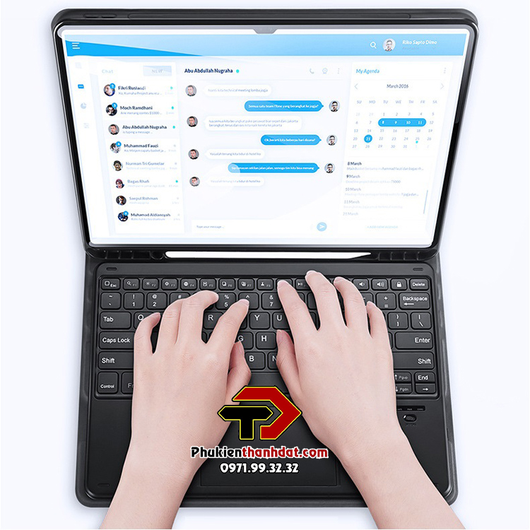 Bao da kèm bàn phím chính hãng Dux Ducis có bàn di chuột TrackPad với chân đế có thể điều chỉnh, bàn phím có thể tháo rời và bàn di chuột thông minh để đánh máy,