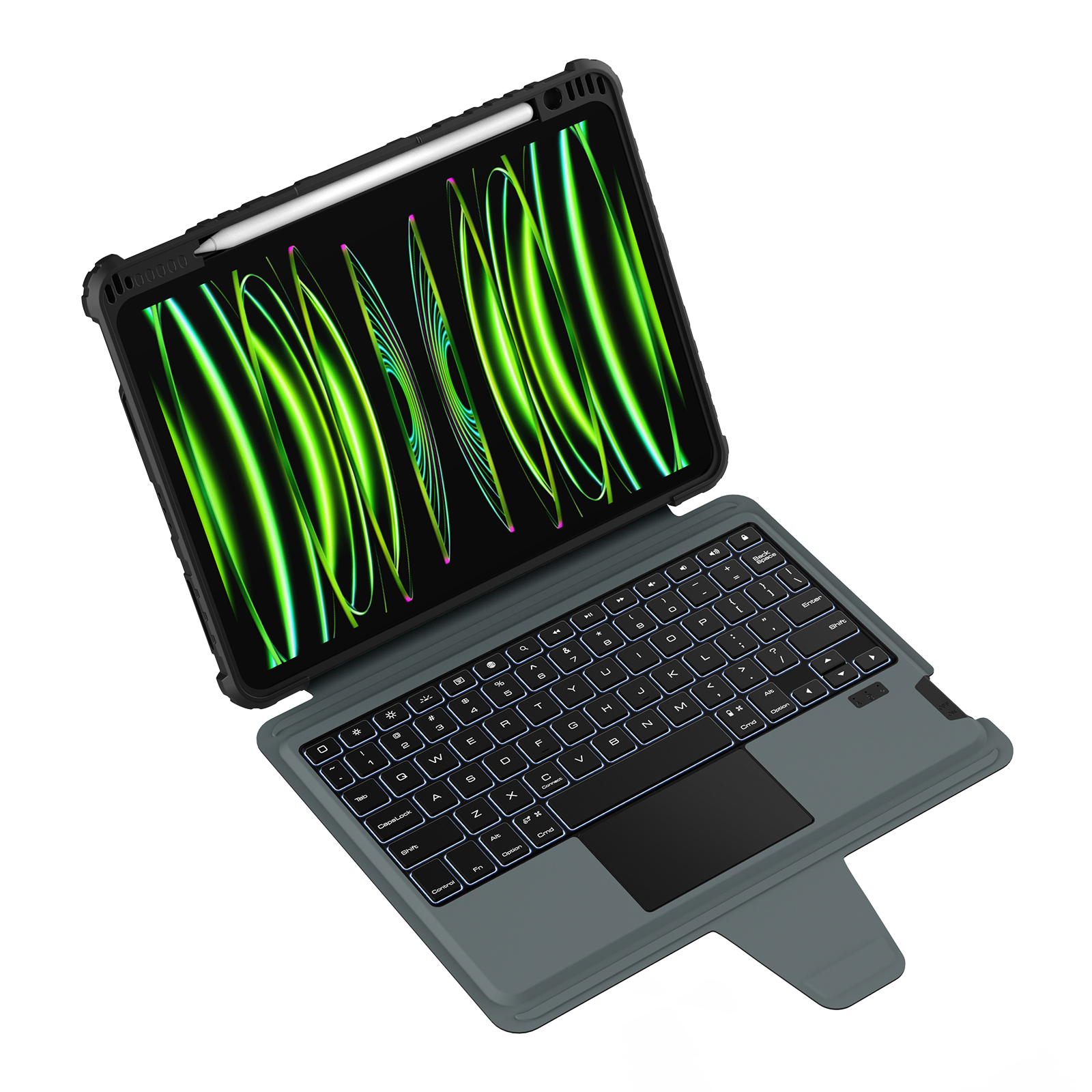 【BÀN PHÍM CÓ ĐÈN NỀN 7 MÀU ĐÃ NÂNG CẤP】 — Bao da iPad có bàn phím này có 7 màu đèn nền. Các phím có đèn nền với 4 mức độ sáng điều chỉnh theo nhu cầu của bạn, với pin lâu dài, bao da iPad có bàn phím có thể hỗ trợ bạn sử dụng liên tục tới 100 giờ (không có đèn nền) và 14 giờ (có đèn nền). Không gian để sạc Apple Pencil trong khi vẫn giữ bao da bàn phím iPad, dễ dàng mang theo và sử dụng.