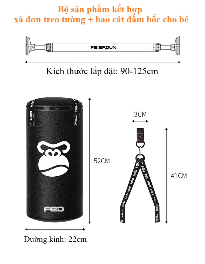 Thông tin sản phẩm Bao cát treo xà trẻ emBao cát treo tường FED-XM0115Ngày nay, mọi người quan tâm nhiều về sự vận động thể chất, càng chăm vận động thì càng phát triển về thể chất và trí thông min...