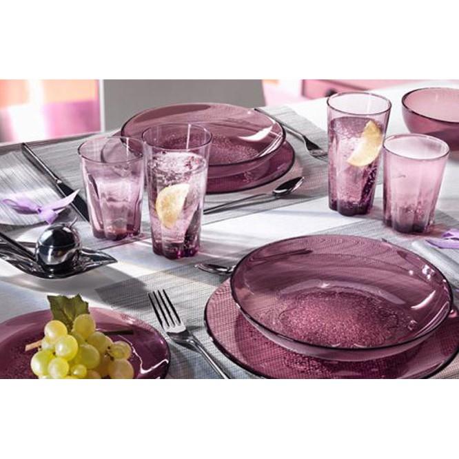 Ấn tượng với đĩa thủy tinh từ cái nhìn đầu tiên với điểm nhấn là họa tiết nổi cách điệu hình bông hoa dưới đáy. Sản phẩm trong suốt có màu tím lạ mắt so với các loại đĩa khác làm bàn ăn của bạn lung linh. Điều này kích thích dạ dày của bạn mang đến những bữa ăn ngon lành hơn. Đĩa dùng để đựng thực phẩm, các món xào, trái cây, hoa quả, … Ngoài ra, bạn cũng có thể dùng để trang trí cho tủ kính hoặc các kệ nhỏ ở gian bếp hay phòng khách.