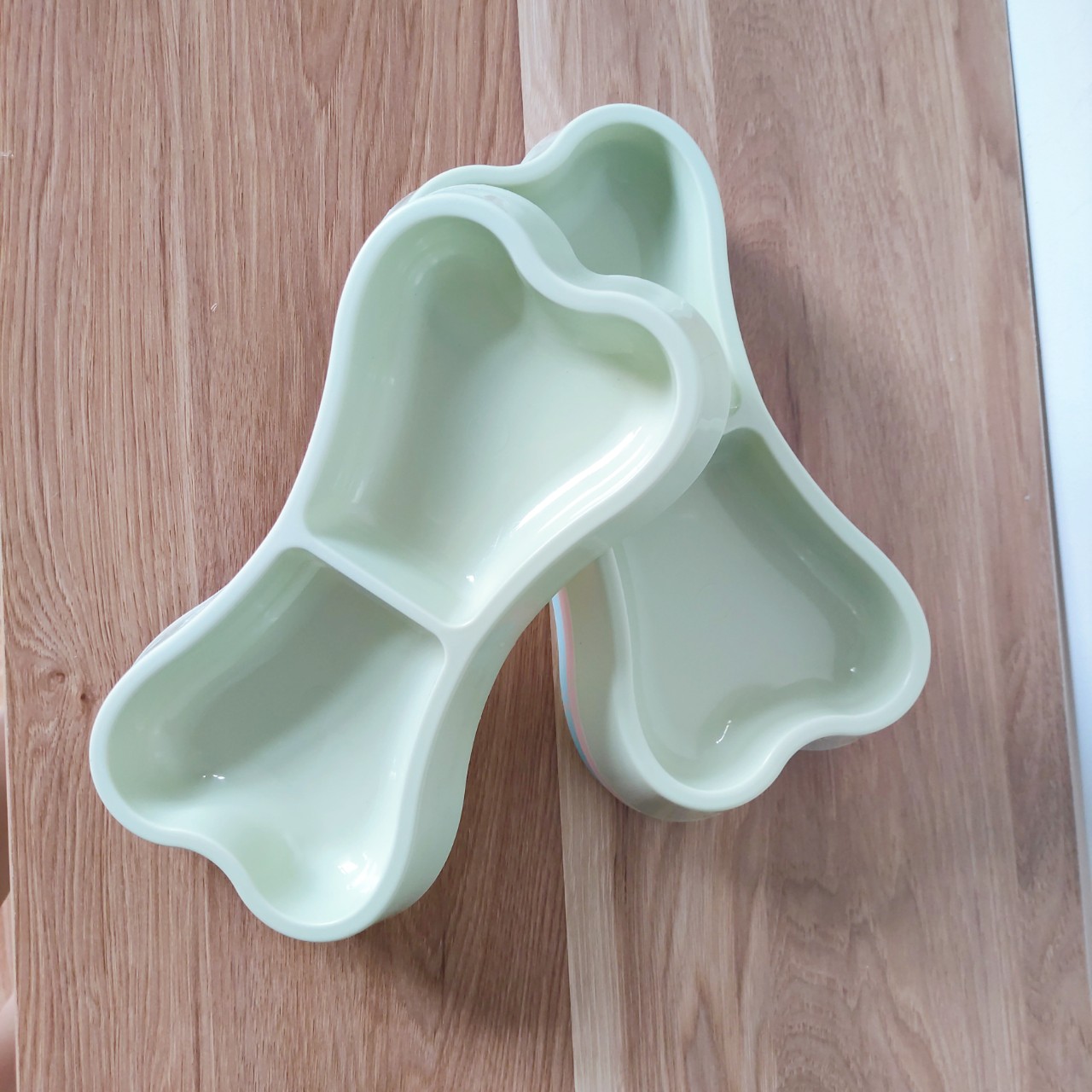 Bát nhựa đôi đựng thức ăn cho chó mèo hình khúc xương Thiết kế bát ăn chó mèo: bát đựng thức ăn được thiết kế 2 ngăn đựng khác nhau, vừa có thể đựng thức