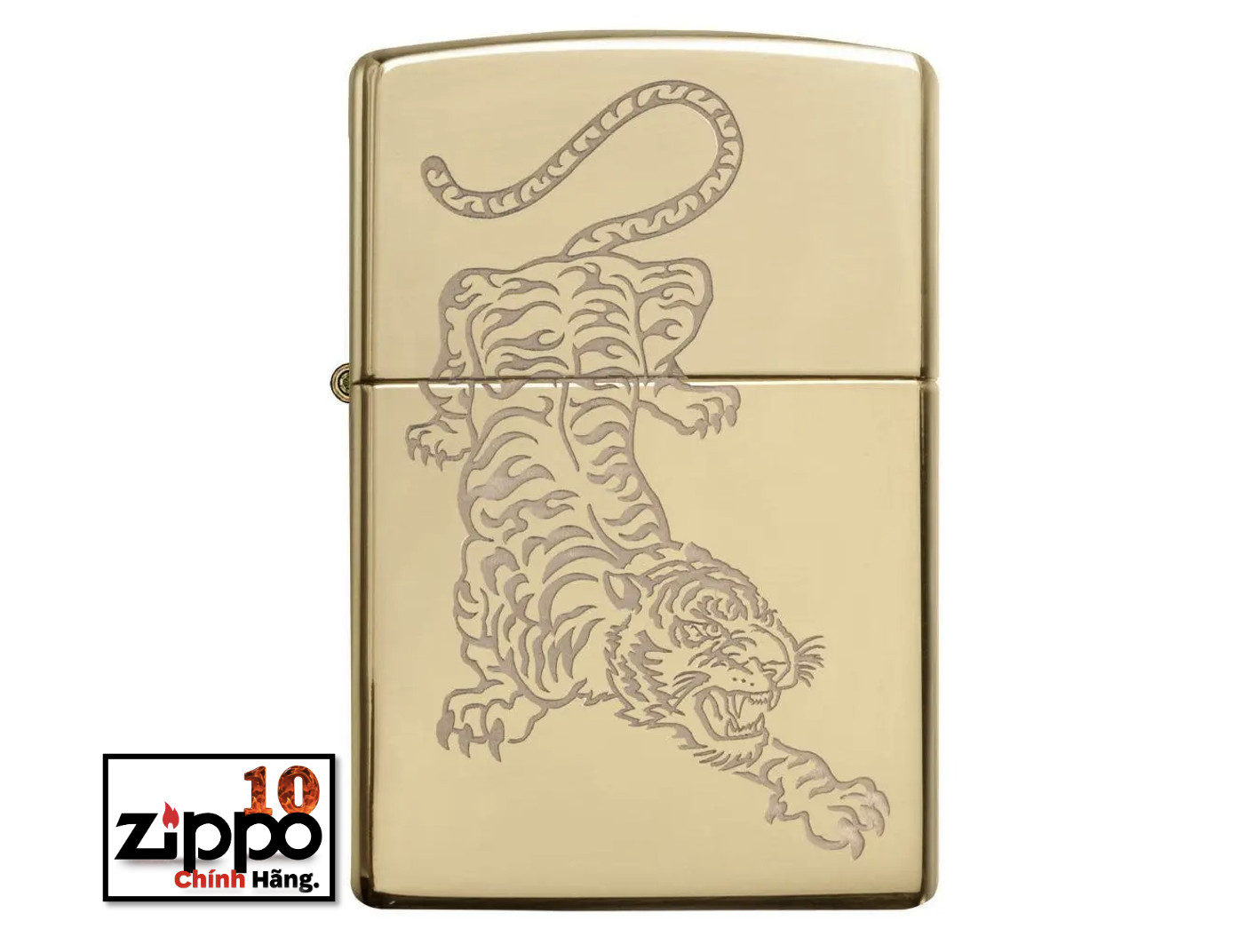 Zippo 29884 – Zippo Tattoo Tiger Design High Polish Brass [BatluaRIO.vn]