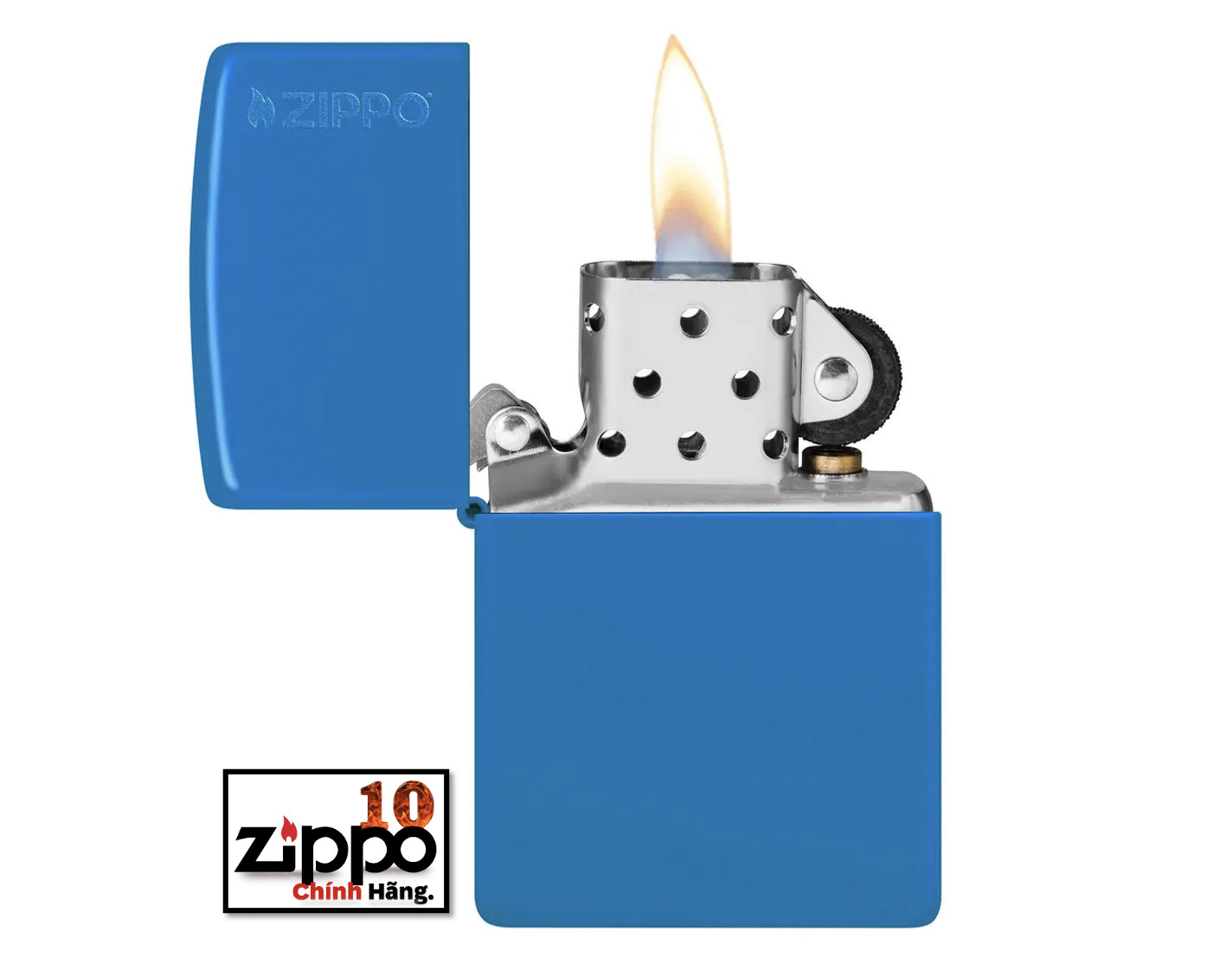 - Bật Lửa Zippo 229zl Royal Blue Matte With Bật Lửa Zippo Logo với thiết kế vỏ bằng chất liệu kim loại mang đến cho zippo trọng lượng nhẹ nhàng, cùng với sắc ánh bạc