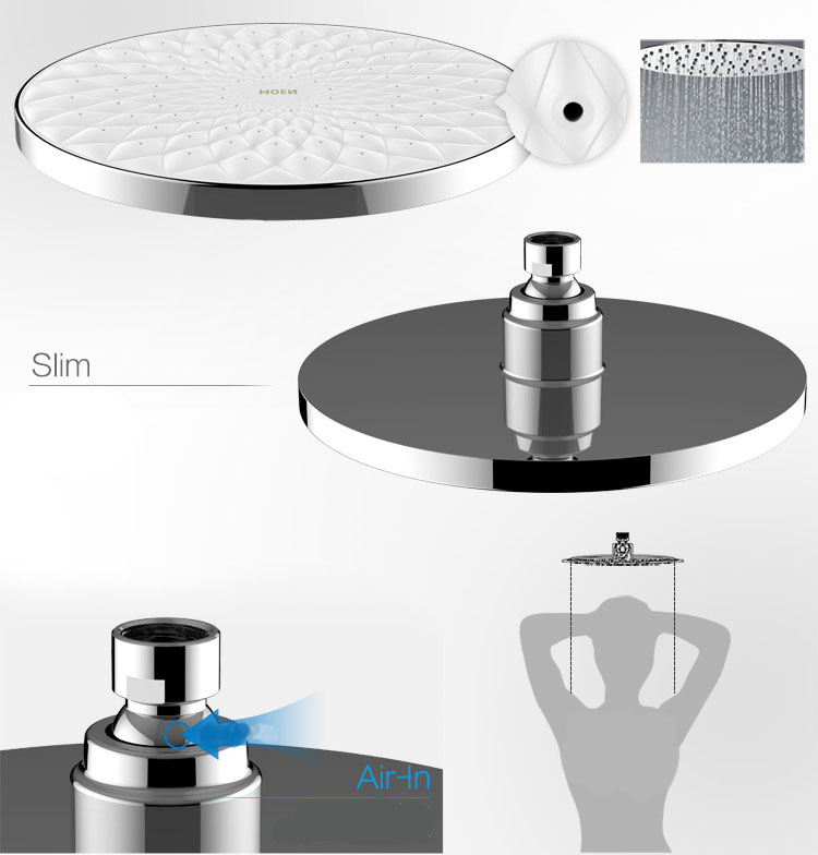 Diện tích bát sen lớn 25cm lượng nước tỏa đều khắp mặt sen giúp bạn tận hưởng dòng nước tắm đều và khỏe. Bát sen được thiết kế mỏng toát lên vẻ sang trọng hiện đại cho không gian phòng tắm của bạn. Bọt khí được trộn vào nước, giúp tiết kiệm đến 30% lượng nước so với sen tắm thông thường mà vẫn mang lại cảm giác êm ái thoải mái.
