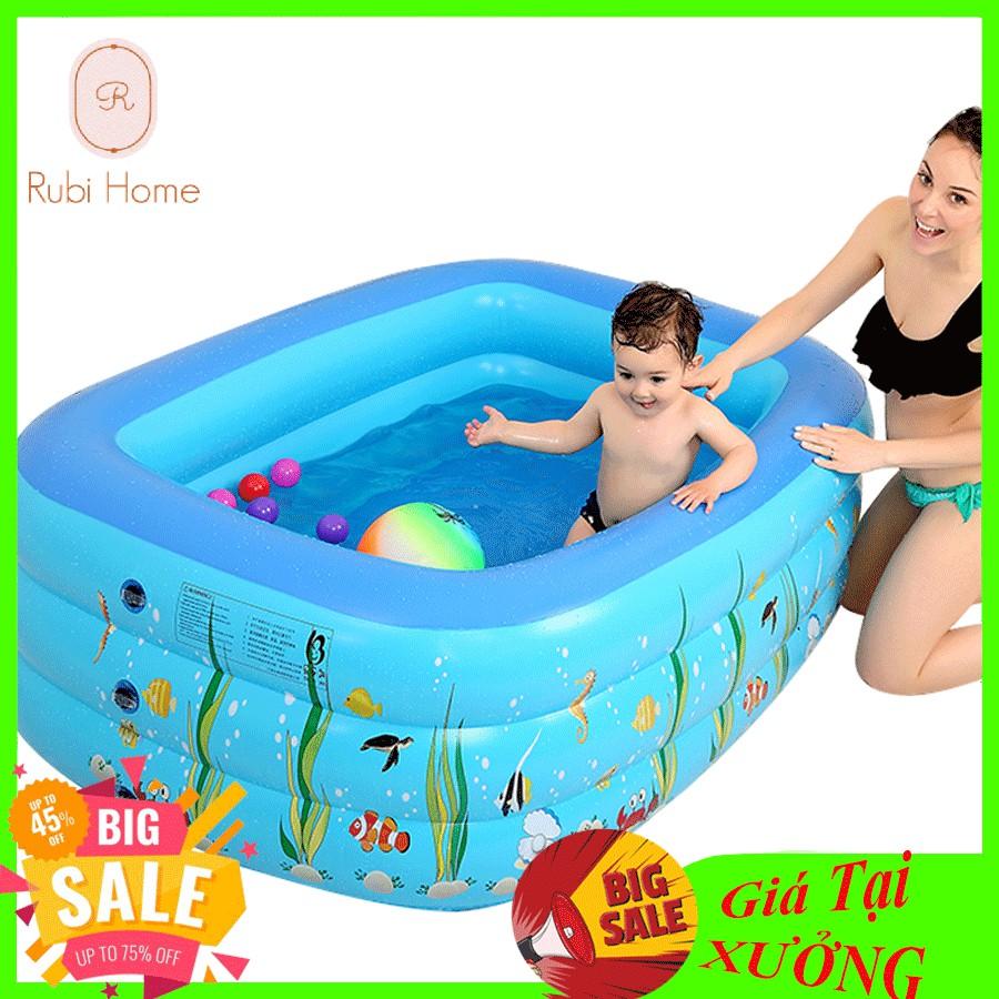 Hồ bơi thiết kế lớn có thể cho 3 bé cùng bơi Chất liệu pvc an toàn Đáy hồ bơm hơi ngồi êm ái Hồ cao 3 tầng