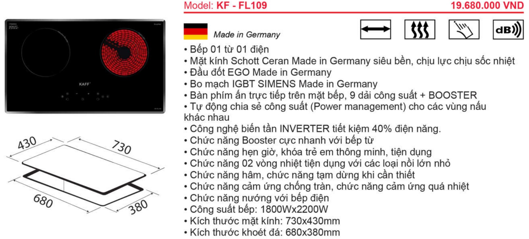 BepXANH.com | Hướng dẫn sử dụng Bếp điện từ Kaff KF FL109 - Bếp 2 vùng nấu, nhập khẩu Đức