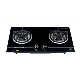 Bếp 02 lò: 01 lò to, 01 lò nhỏ Mâm chia lửa bằng đồng Hệ thống đánh lửa pin Pép hầm tiết kiệm gas Mặt kính cường lực, màu đen Kiềng gang đúc Lượng gas