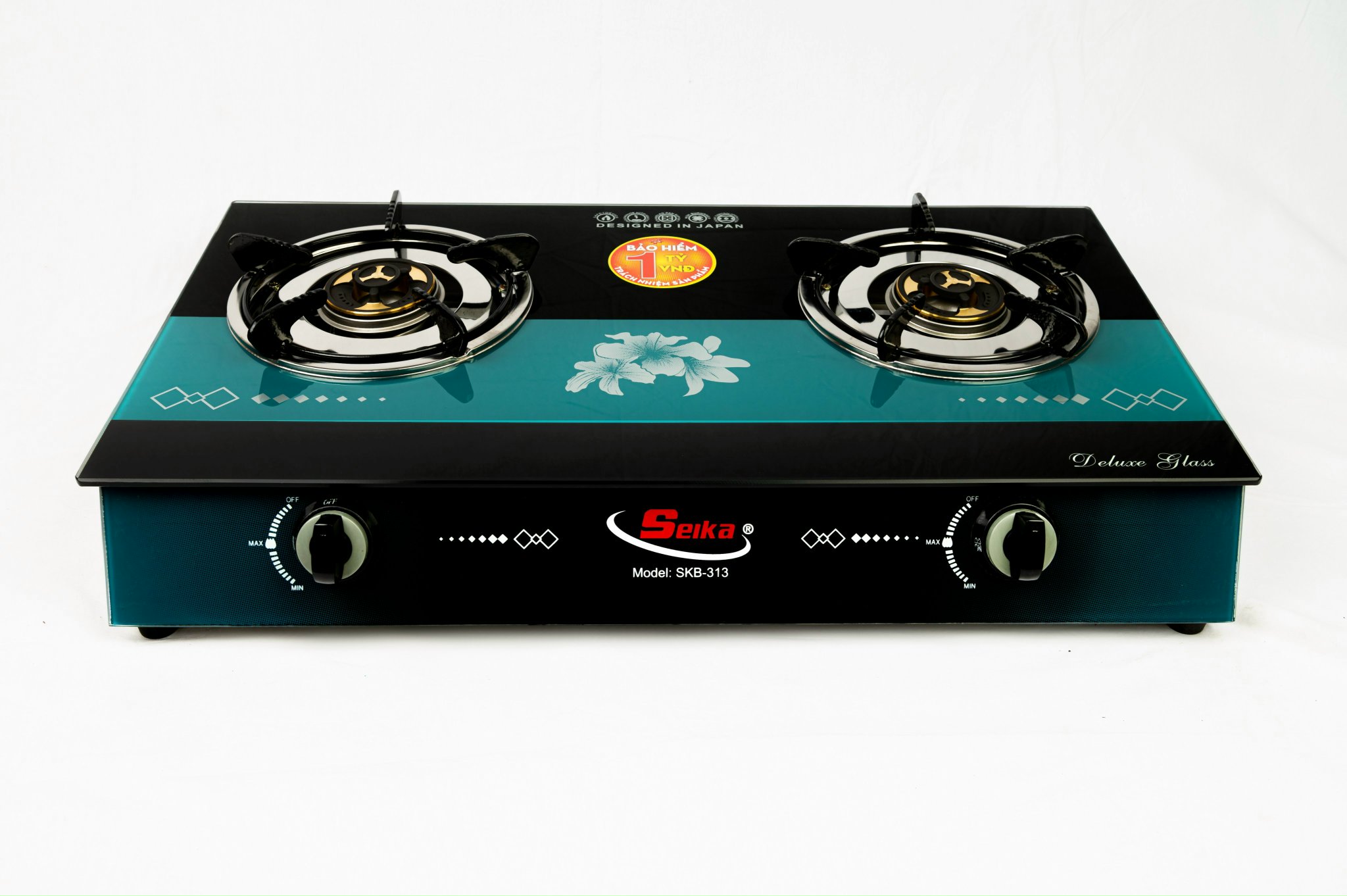 Bếp Gas Đôi Mặt Kính Seika(Sen Đồng)- Mặt kiếng cao cấp chịu lực, chịu nhiệt, thiết kế hoa văn sang trọng - Thân bếp làm bằng inox chống rỉ sét. - Kiềng thép sơn tĩnh
