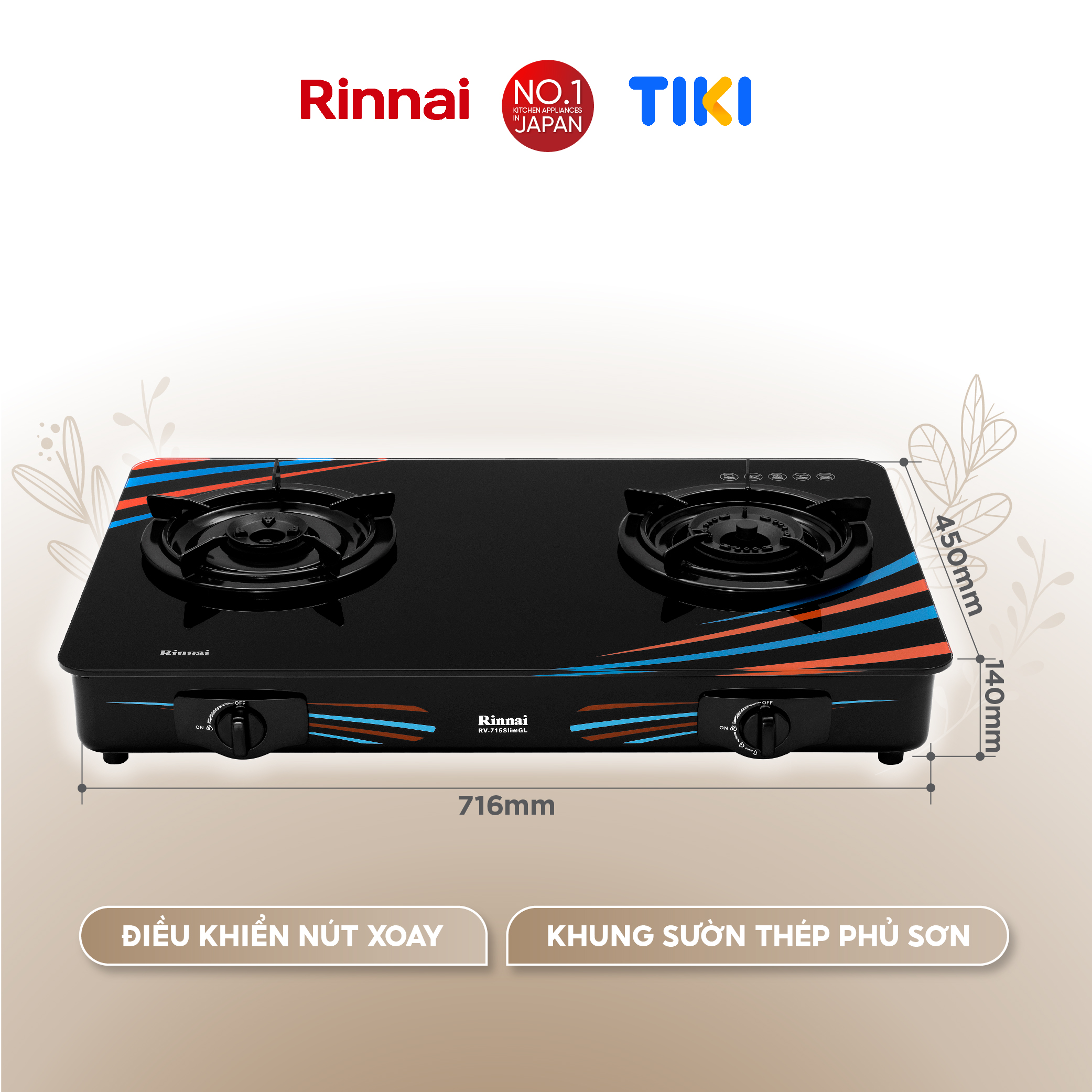RINNAI chân thành cảm ơn bạn đã quan tâm đến sản phẩm: Bếp gas dương Rinnai RV-715Slim(GL-SC) mặt bếp kính và kiềng bếp men - Hàng chính hãng.