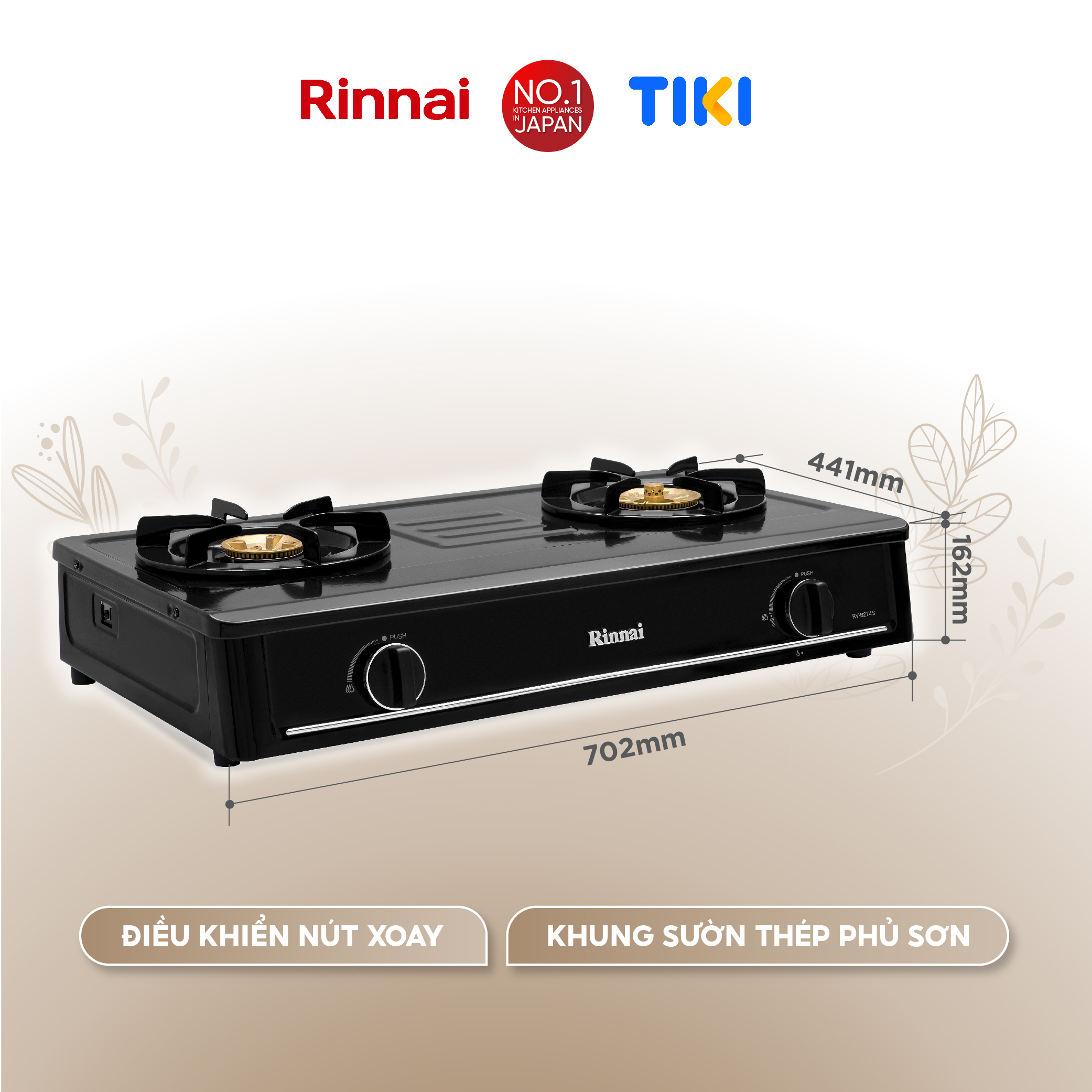 ✨Bếp gas dương Rinnai RV-B274SB(EB) mặt bếp men và kiềng bếp men - Hàng chính hãng.