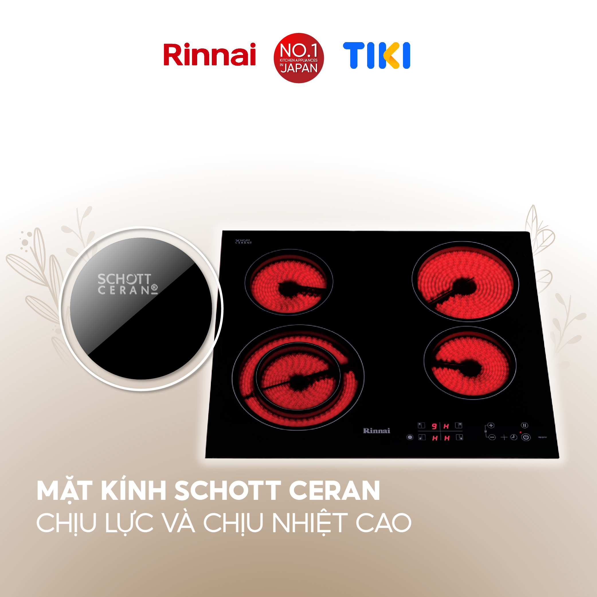 Bếp hồng ngoại Rinnai RB-E41HV mặt kính Schott 6000W - Hàng chính hãng.