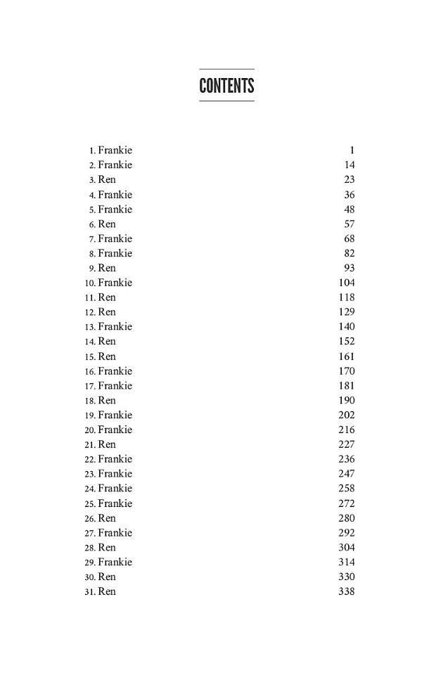 Frankie Before I got wise, I would have tripped over myself to get a guy like Ren, but with my diagnosis, I've learned what I am to most people in my life - a problem, not a person. Now, opening my heart to anyone is the last thing I'm prepared to do. And not even a guy as sweet as Ren can change