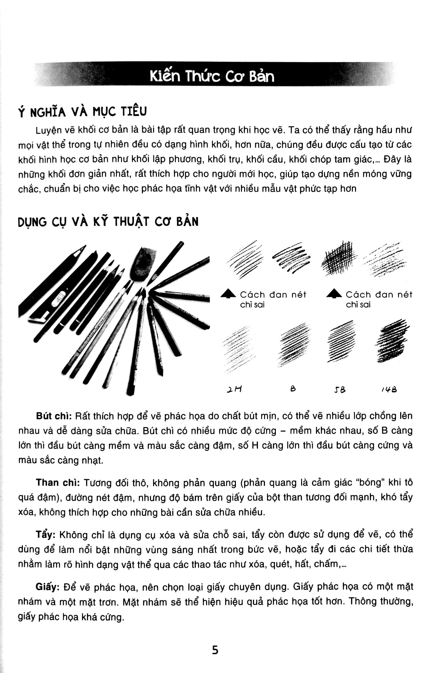 LUYỆN VẼ HÌNH KHỐI trong bộ sách này sẽ giúp bạn hiểu được cấu trúc cơ bản của các vật thể trong tự nhiên. Thông qua những bài tập vẽ khối đơn giản, bạn sẽ có cái nhìn tổng quan về những kiến thức quan trọng nhất trong hội họa như ánh sáng, phối cảnh, bố cục…, tạo tiền đề cho sự phát triển kỹ năng hội họa sau này.