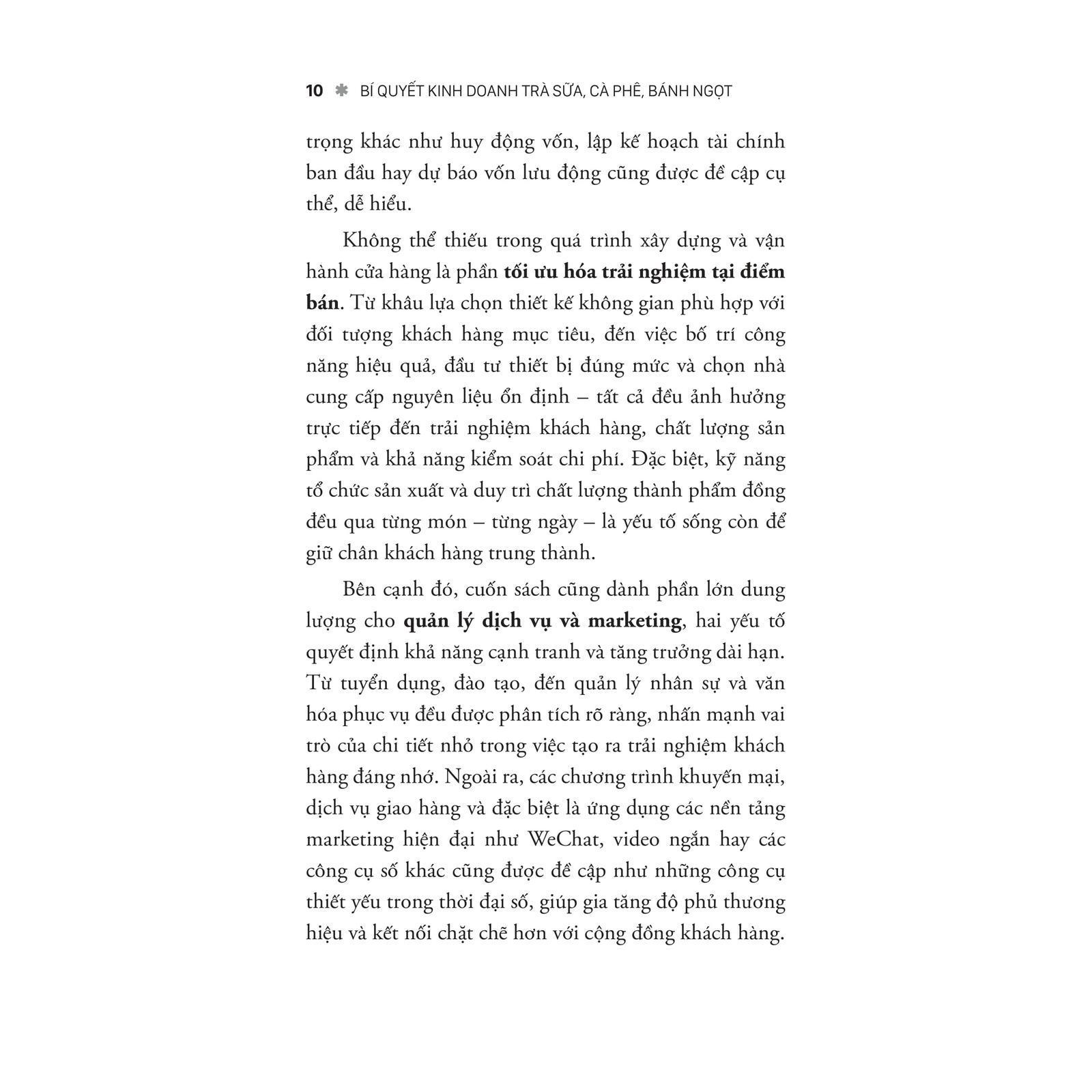 Cuốn sách "Bí quyết kinh doanh trà sữa, cà phê, bánh ngọt: Hướng dẫn từ A-Z cho người mới bắt đầu" cung cấp kiến thức và kỹ năng toàn diện để mở và quản lý cửa hàng trà sữa, cà phê, bánh ngọt.